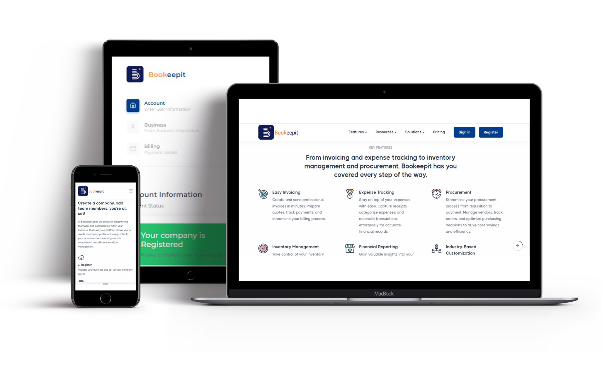 From invoicing and expense tracking to inventory management and procurement, Bookeepit has you covered every step of the way.
